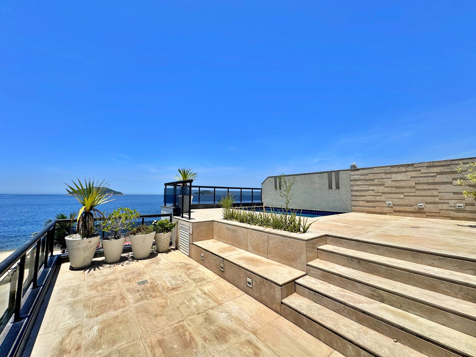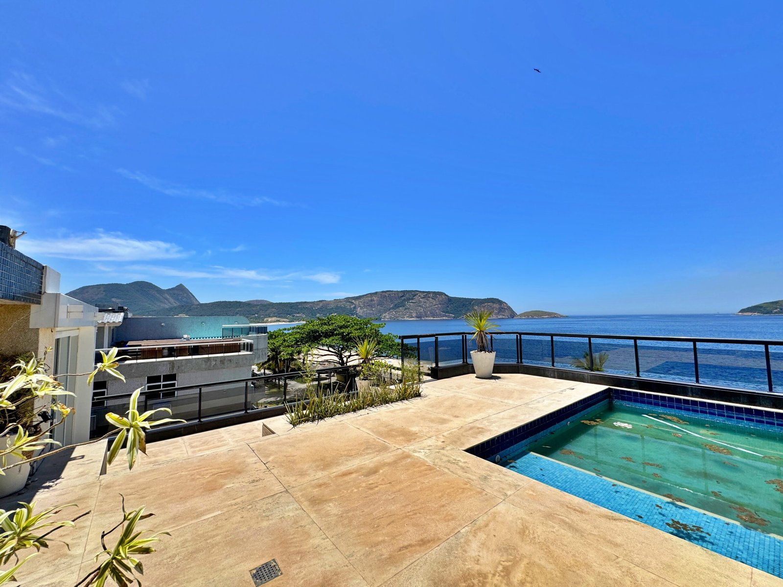 Cobertura de alto padrão com vista panorâmica para a praia de Camboinhas em Niterói. A cobertura conta com 3 suítes, piscina e sauna.